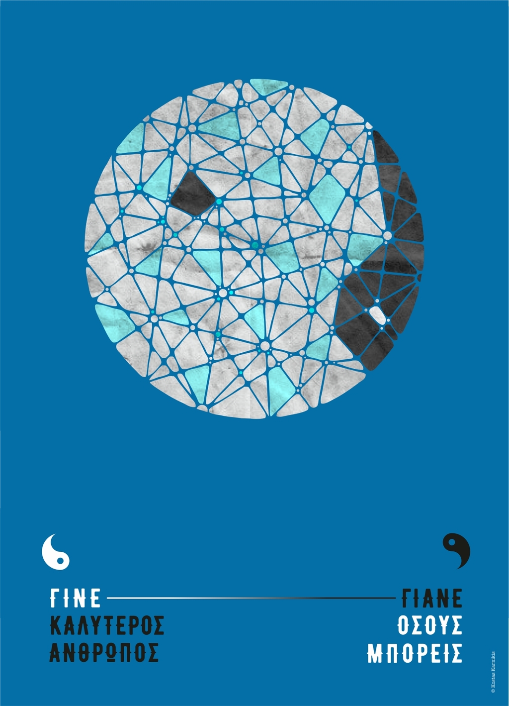 “Be a better person / Help as many as you can” lives inside a yin-yang, but not the one you’re used to. This circle isn’t smooth—it’s a mosaic of small, shifting pieces, like life itself always in motion. The balance tips boldly: the white side swells to seventy percent, pushing forward, overcoming, reminding us that goodness isn’t passive—it grows, expands, wins. The black side still remains, grounding and necessary, but it’s the light that leads. Beneath it all, the phrase anchors the image, clear and steady: a call to rise a little higher, to give a little more. This isn’t philosophy trapped in geometry—it’s a symbol of becoming, of choosing better, of carrying others with you as you climb. A circle of change, a mantra of motion.