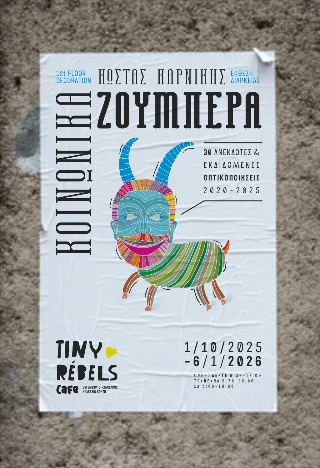 Hi there! I’m a Graphic Designer, Illustrator, and Artist with a love for bold colors, clever branding, and a healthy dose of humor. My creative toolbox includes everything from logos and posters to packaging and print—and I always sprinkle a little inspiration (and caffeine) into every project. Born in the charming village of Fodele in 1974, I studied Graphic Arts and have been living and creating in Heraklion, Crete since 1998. Along the way, I co-founded the creative team “Poseidonos 21” and served as Art Director for venues like “Polis Cultural Space” and the underground hotspot “Pagopoieion First Floor Events.” Basically, if it involves design and a splash of eccentricity—I’m in.